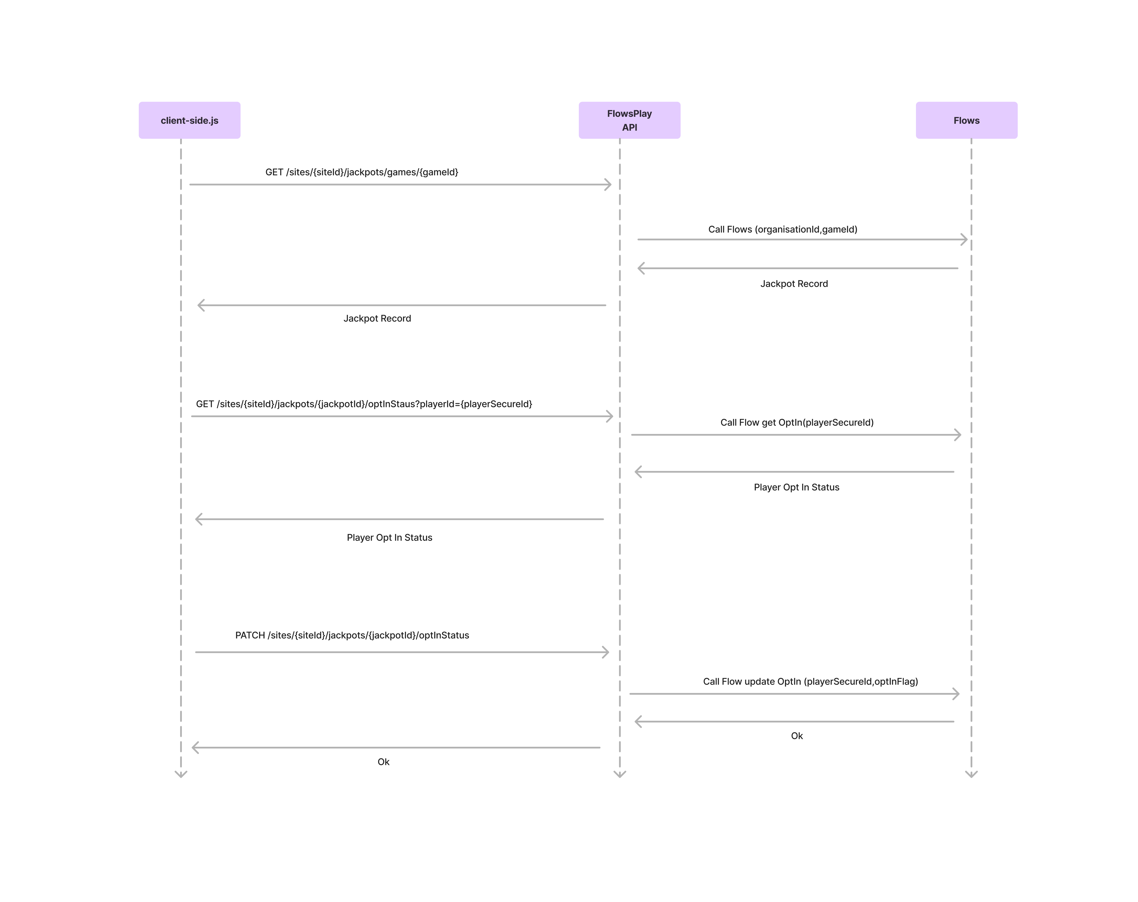 Here’s how your system should interact with FlowsPlay API to retrieve jackpot information and manage user opt-in status: